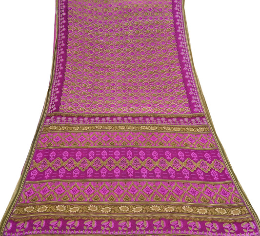 Indian Vintage Saree Purple & green 100% Pure Georgette Silk Printed Sari Sewing 6yd Craft Fabric Soft Floral Dress Designing for Crafting