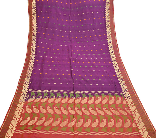 Indian Vintage Heavy Sari Purple & Orange Hand Woven Sarees 100% Pure Silk Zari 5Yd Floral with Blouse fabric