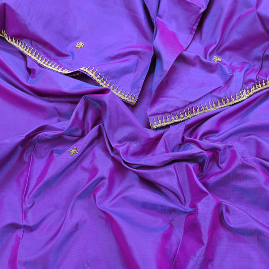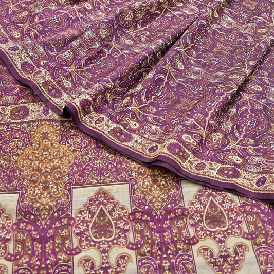 Indian Vintage Purple Saree 100% Pure Silk Printed Sari 6yard Sewing Craft Fabric DressMaking Soft Golden Zari