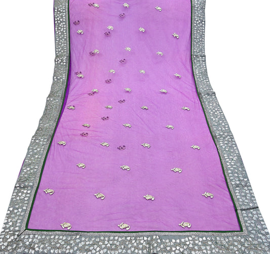 Indian Vintage wedding Hand Embroidered Purple Net Dupatta Zardozi Stole Veil Hijab Bridal