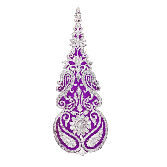 Indian Vintage Purple velvet Appliques Set of 1 | Hand-Embroidered Floral Patches with Zardozi,Dabka, Zari,for Craft, Journals