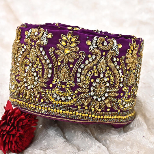 Indian Vintage Purple Velvet Sari Border 1Yd Hand Embroidered Dabka Lace Trim Sewing Craft Ribbon Dress Decor