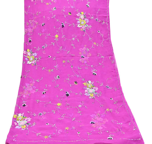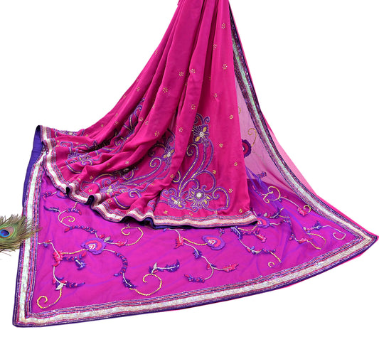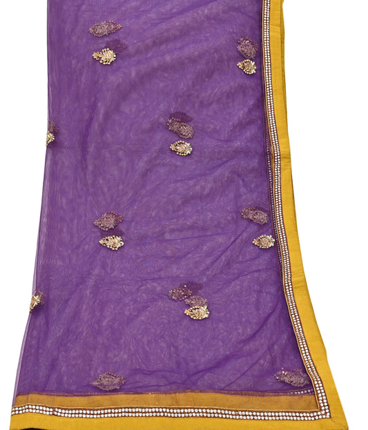 Indian Vintage Purple Dupatta Pure Georgette silk Long Stole Hand Embroidered Scarves Stole Veil Wrap Sequins Hijab