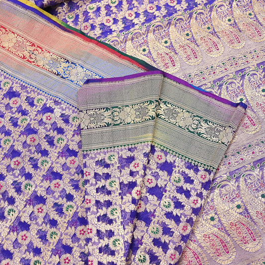 Indian Vintage Purple Heavy Saree Pure Organza Silk Woven Banarasi Brocade Indian Sari Fabric Golden Zari 5Yd Ethnic