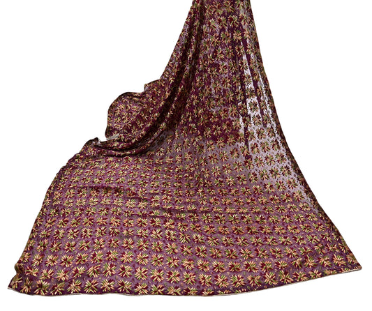 Indian Vintage Dupatta Purple Pure Silk Long Stole Hand Embroidered Scarves Floral Design Stole Veil Wrap Zardozi/ dabka