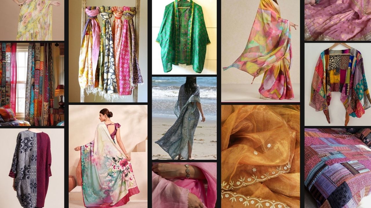 FREE SHIPPING Vintage Lot Of 5 Sarees Recycled Used Felting Quilting Pure Silk Sari With Defect Fabric Craft Sari Dressmaking Sewing Soft