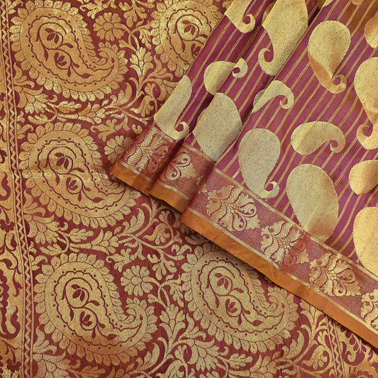 Vintage Kanjivaram Silk Saree Purple & Saffron Floral Zari, Indian Sari Fabric 5yard Dressmaking crafting