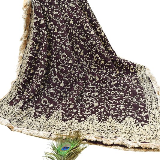 Indian Vintage Purple Dupatta Pure Silk Long Stole Hand Embroidered Scarves Floral Design Stole Veil Wrap Sequins