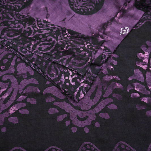 Indian Vintage Sari Purple & Black Batik Printed 100% Pure Cotton Saree Craft Soft Fabric 5Yard Sewing Sarong Wrap Boho
