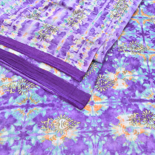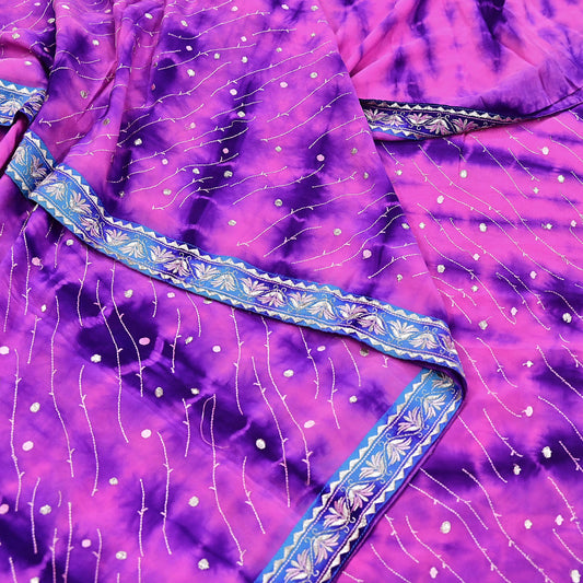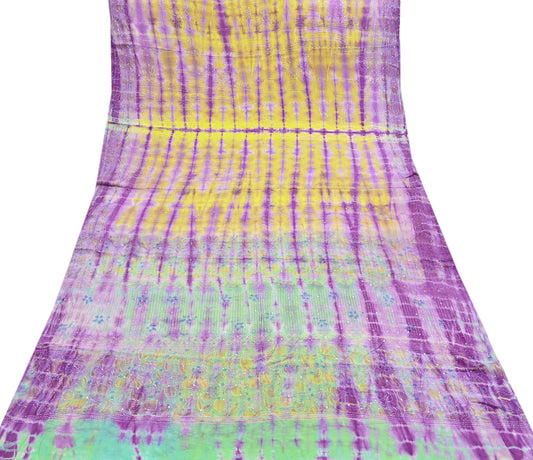 Indian Vintage Saree Purple & Peach Pure Crepe Silk Hand Embroidered Tie-Dye Sari Fabric 5yard Sewing Craft Fabric Ethnic Dressmaking