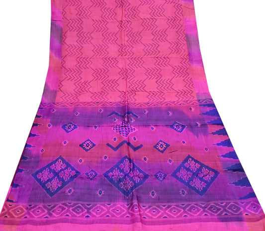 Indian Vintage Sari Black & purple Hand woven Sambalpuri Ikat Saree Pure Silk Craft Fabric 5Yd Ethnic Chackra Border Zari Dress making