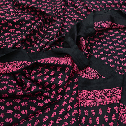 Vintage Saree Black Pure Chiffon Silk Printed Sari Craft Fabric Sewing 5Yard Soft
