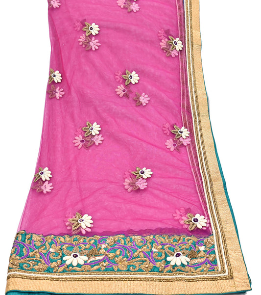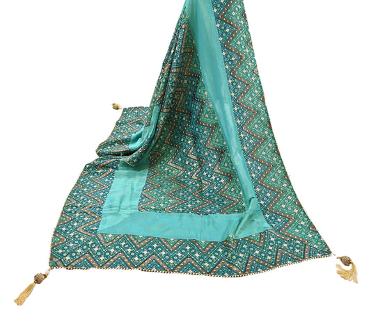 Indian Women Vintage Heavy Blue Dupatta Pure silk Long Stole Hand Embroidered Hijab Scarves Veil Wrap Zardozi Dabka