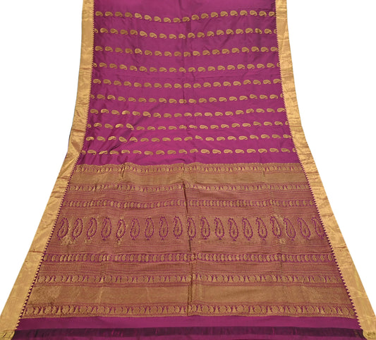 Vintage Purple Pure Silk Saree Indian Printed Silk Fabric 6Yards Boho Craft Material for Sewing, Quilting, Dressmaking, Upcycling