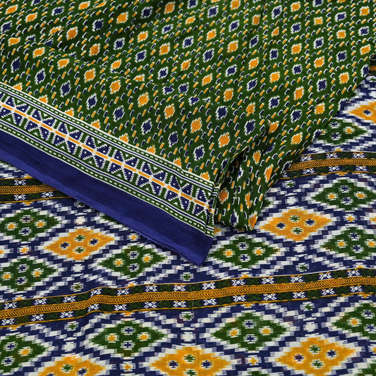 Indian Vintage Sari Blue & Green Pure Cotton Printed Sarees Craft Fabric 5Yd Soft Sewing Sarong Wrap Boho Floral Quilting Upcycle Crafting