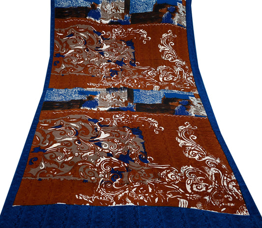 Indian Vintage Sari Maroon & Beige Pure Chiffon Silk Printed Sarees Craft Fabric Sewing 5Yard Soft Dress Making Quilting Upcycle Crfating