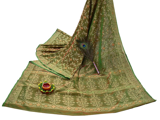 Indian Vintage Sari Green 100% Pure Silk Hand Woven Sarees Craft Fabric 5Yd Ethnic Sewing Dress making Crafting Quilting Upcycle