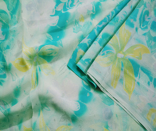Women Vintage Sari Green Pure Georgette Silk Printed Saree Craft Fabric Sewing 5Yard Soft Light Dress Making Floral