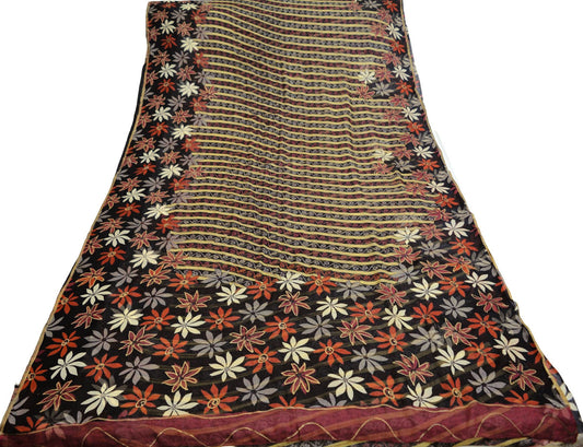 Indian Vintage Sari Black Pure Chiffon Silk hand Painted Saree Craft Fabric Sewing 5Yard Soft Light Sari Floral Dress Making