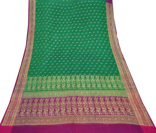 Indian Vintage Green Saree Hand Woven 100% Pure Organza Silk Indian Sari Fabric 5Yard Silk Sari Ethnic Floral