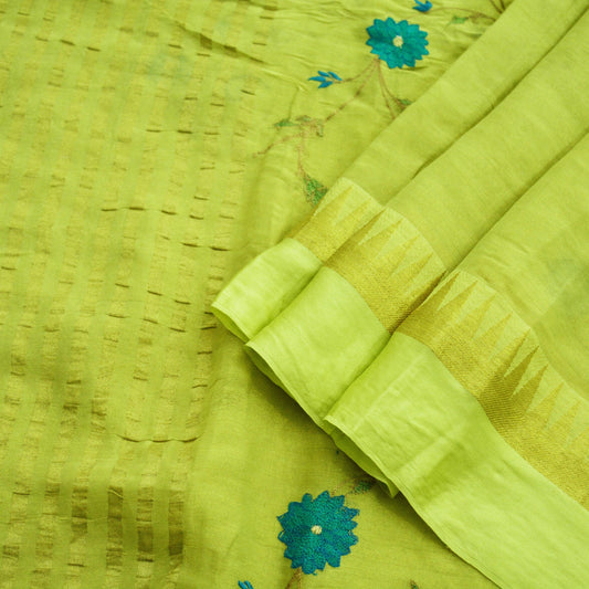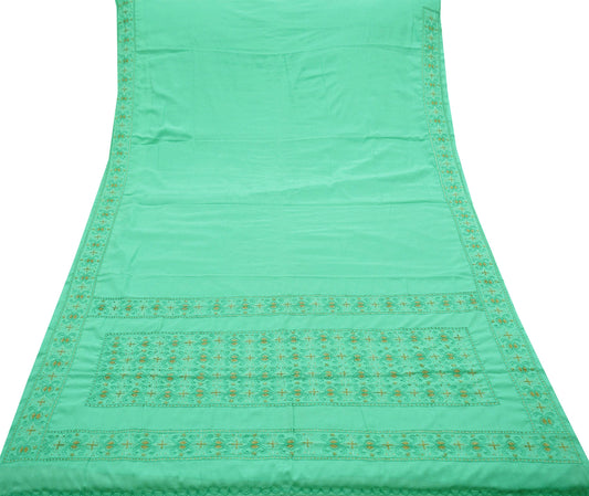 Indian Vintage Sari Green Art Silk Hand Embroidered Sarees Craft Fabric 5Yd Sewing Soft Golden Zardozi/Zari Floral Upcycle Dress Making used