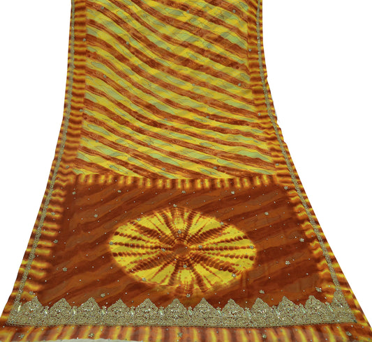 Indian Vintage Sari Georgette Hand Embroidered Sarees Craft Fabric 6Yd Sewing Soft Zari Zardozi/Dabka Beaded Dress Making Crafting Upcycle