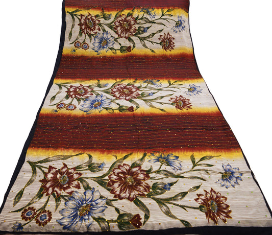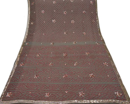 Indian Vintage Sarees Brown 100% Pure Georgette Silk Hand Embroidery Bandhani Sari 5Yard Craft Fabric Sewing Dress making Quilting Crafting