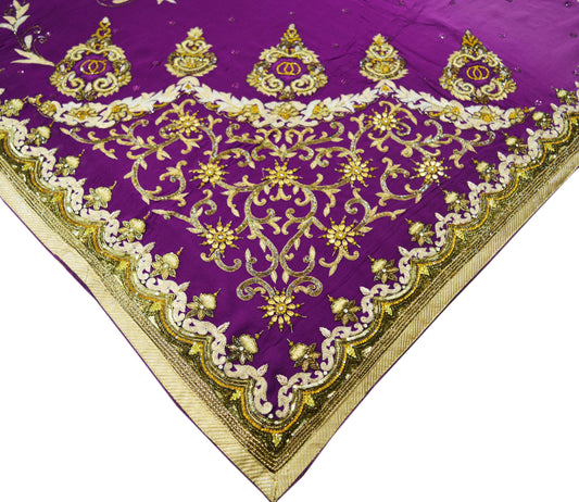 Indian Vintage Purple Saree Pure Georgette Silk Hand Beaded Indian Sari Fabric 5Yard Sewing Soft Ethnic Glass Beaded