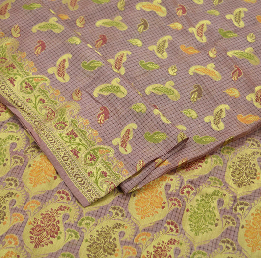 Indian Vintage Sari Purple 100% Pure Silk Printed Saree Fabric 5yd Sewing Craft Fabric DressMaking Soft Floral Paisley