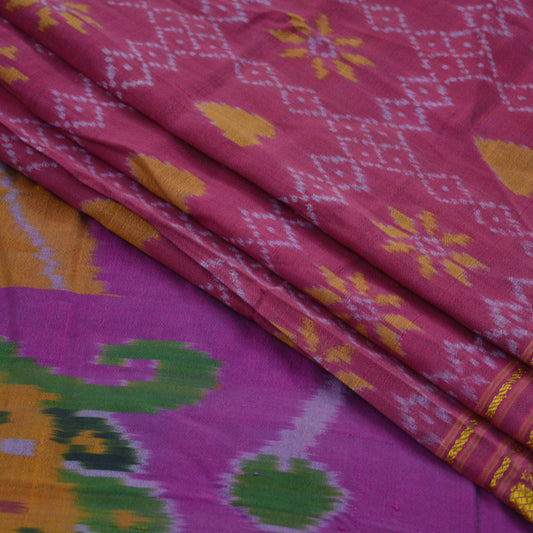 Indian Vintage Saree Pure Silk Hand Woven Ikat Sari Craft Fabric 5Yd Zari Ethnic Premium Dress Making Crafting Peacock Quilting Sewing