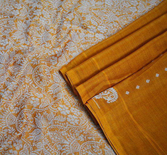 Indian Vintage Sari Mustard Heavy Pure Satin Silk Hand Woven Brocade Saree Ethnic Wear 5Yard Floral