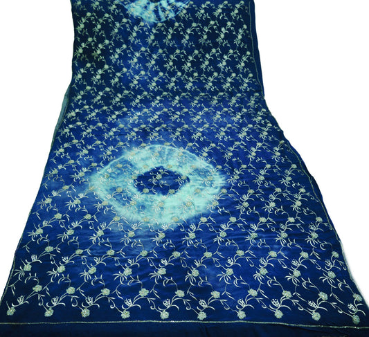 Indian Vintage Sari Blue & Green Pure Crepe Silk Hand Embroidered Saree 6yard Sewing Soft Craft Ethnic Wrap