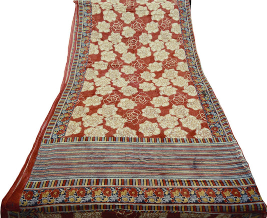 Indian Vintage Sari Red & Yellow Pure Silk Printed Saree Fabric 5yd Sewing Craft Fabric DressMaking Soft