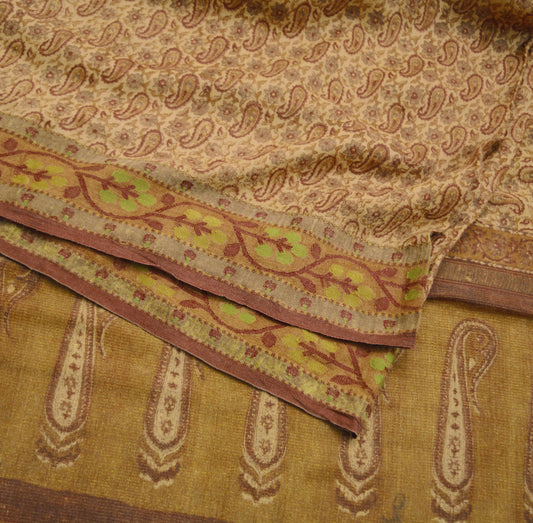 Vintage Sari Beige & Brown 100% Pure Georgette Silk Printed Saree Sewing 5yd Craft Soft Dress Designing for Crafting Floral