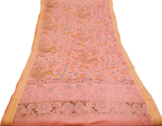 Indian Vintage Sari Peach 100% Pure Silk Printed Sarees 5yd Sewing Craft Fabric Soft Dress Designing for Crafting Quilting Upcycle Used