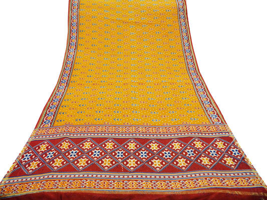 Indian Vintage Sari Yellow & Red Pure Silk Hand Woven Odisha Patola Sarees Craft Fabric 5yd Zari Border Fringes Crafting Quilting Upcycle