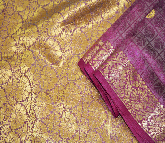 Indian Vintage Green & Purple Sarees Organza Woven Indian Sari Fabric 6Yard Sewing Ethnic Golden Zari Floral