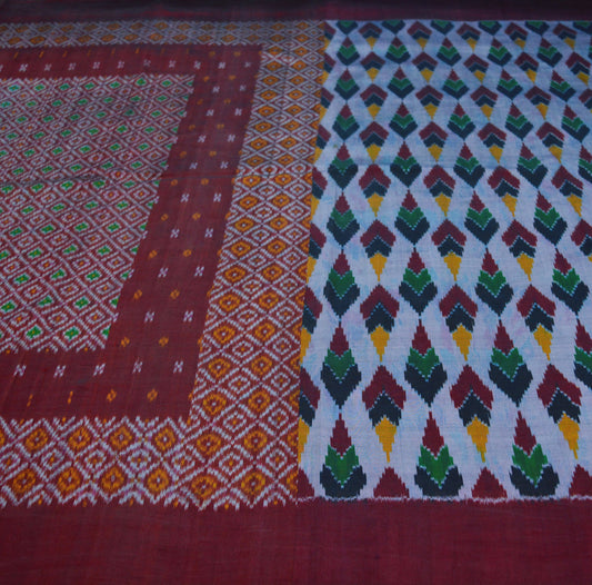 Indian Vintage Saree Gray & Maroon Pure Silk Hand Woven Ikat Indian Sari Fabric 5Yard Craft Ethnic Premium