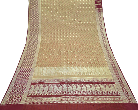 Indian Vintage Sari Maroon & Cream Pure Cotton Hand Woven Baluchari Saree 5yard Ethnic Fringes Peacock