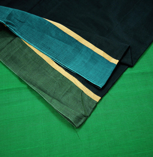 Indian Vintage Sari Black & Green Pure Silk Hand Woven Sarees 5Yd Craft Fabric Sewing Ethnic Bollywood Black Sarees Upcycle Fringes Zari