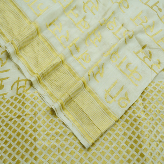 Indian Vintage Off-White Dupatta Long Stole Pure Silk Hand Woven Indian Scarves Veil Scarf Wrap Floral Zari