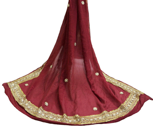 Indian Vintage Maroon Dupatta Pure silk Long Stole Hand Embroidered Scarves Floral Design Stole Veil Wrap Zari Zardozi