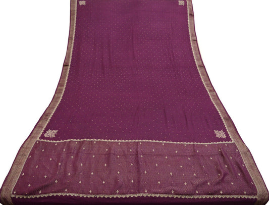 Indian Vintage Pink Saree Pure Silk Hand Embroidered Bandhani Printed Sari Craft Fabric 5yd Soft Zardozi Dress making Quilting Crafting