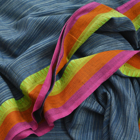 Indian Vintage Sari Gray Pure Cotton Hand Woven Sarees Craft Fabric 5Yd Soft Stripes Fringes Sewing Sarong Dress Making Quilting Crafting