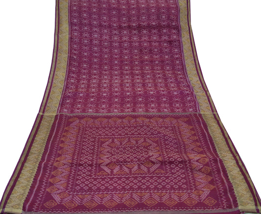 Indian Vintage Sari Maroon Hand woven Sambalpuri Ikat Saree Pure Silk Craft Fabric 5Yd Ethnic Chackra Zari Border