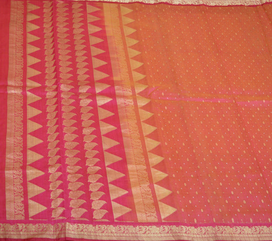 Vintage Pink & Peach Hand Woven Saree 100% Pure Silk Indian Sari Metallic Golden Zari 5Yard Floral Design