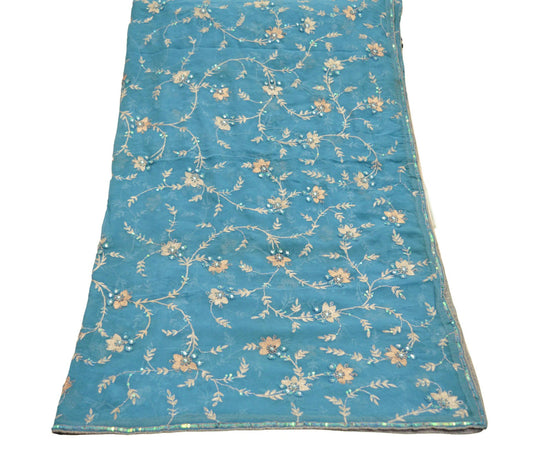 Indian Vintage Blue Dupatta Pure Georgette silk Long Stole Hand Embroidered Scarves Stole Veil Wrap Sequins