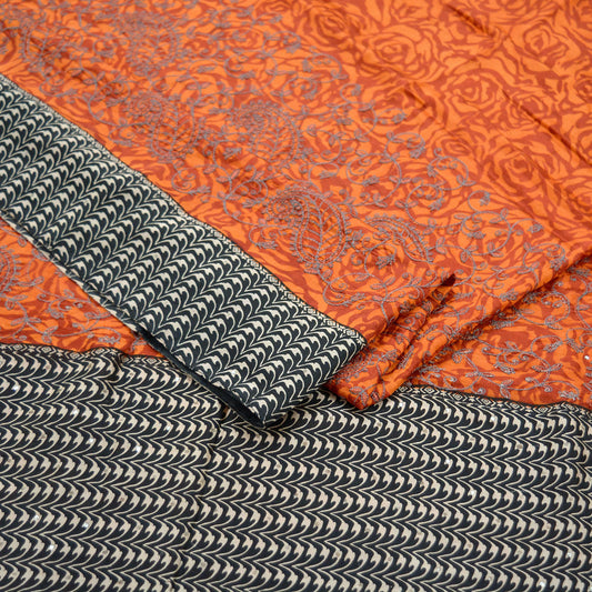 Indian Vintage Sari Orange Pure Silk Hand Embroidered Sarees 5Yd Craft Fabric Sewing soft Quilting Crafting Upcycle Ethnic Bollywood sarees