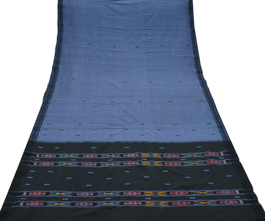 Indian Vintage Sari Blue & Black Hand woven Sambalpuri Ikat Sarees Pure Cotton Craft Fabric 5Yd Ethnic Chackra Border Dress Making Upcycle