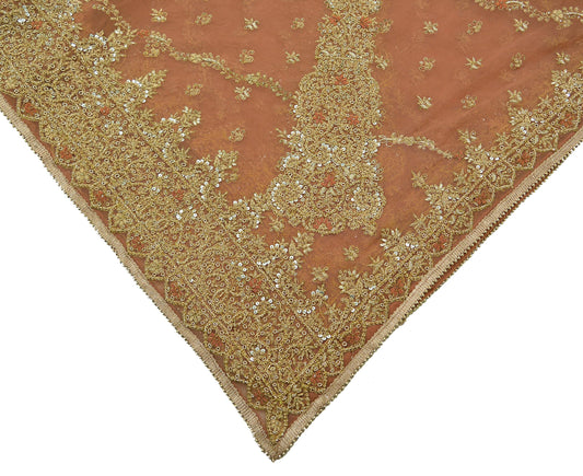 Indian Vintage Heavy Peach Dupatta Net Mesh Long Stole Hand Embroidered Scarf Zardozi Zari Glass Wedding/ Bridal Veil Hijab Scarves